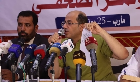 أحمد حوذان سلط مؤتمر صحفي أقيم في محافظة مأرب الضوء على الوضع المأساوي لل ...