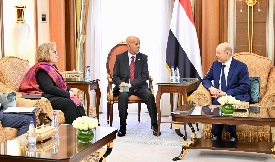 استقبل رئيس المجلس الرئاسي رشاد العليمي، اليوم الاحد، مساعدة وزير الخارجية الاميركية لشؤ ...