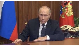 معلناً التعبئة الجزئية في الجيش بدءا من اليوم ، وجه الرئيس الروسي فلاديمير بوتين كلمة إلى مواطنيه، ت ...