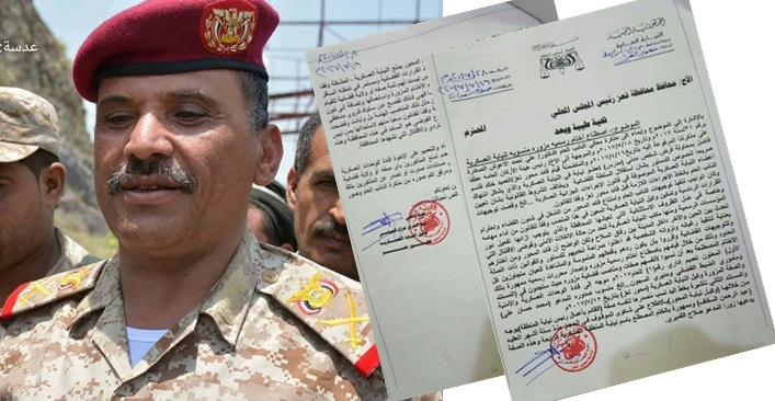 في فضيحة مدوية كشف تقرير رسمي عن قيام قائد محور تعز خالد فاضل بتزوير اختام رسمية خاصة بنيابة ...